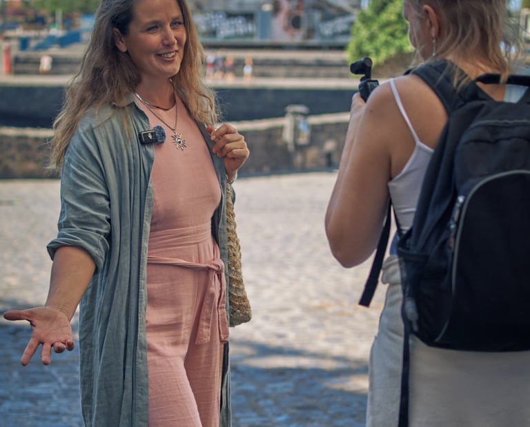 Day 5. Personality. We learn not just to speak, but to "sound" with our whole body. Interaction on camera, gait, gestures. We shoot lifestyle content: you're dynamic, you're real, you're alive.